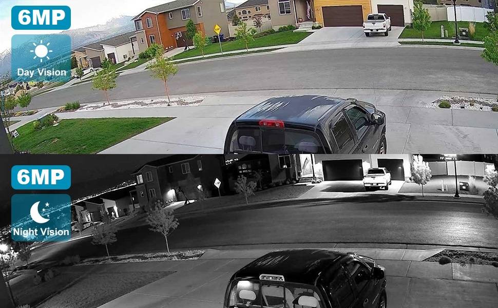 - 【6MP, Video, Audio】6MP resolution 3072x2048P at 25 frames-per-second (FPS). 6MP Ultra HD video recording provides superior quality for reviewing fine details in heightened resolution. Up to 100ft Enhanced IR Night Vision to produce more bright and crisp images Day&Night (Smart IR cut filter with auto switch).