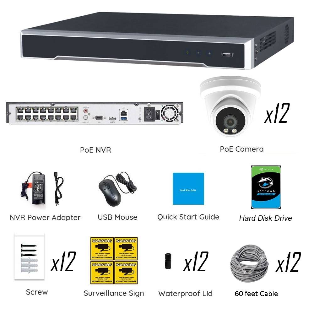- 【Hikvision Generic Product】Come with (12) x 6MP PoE Security Camera, Hikvision Generic NVR and (12) 60ft Ethernet Cables. Upgradable English version. 2 year warranty and life-time tech support will be covered by CTVISION SECURITY in North America