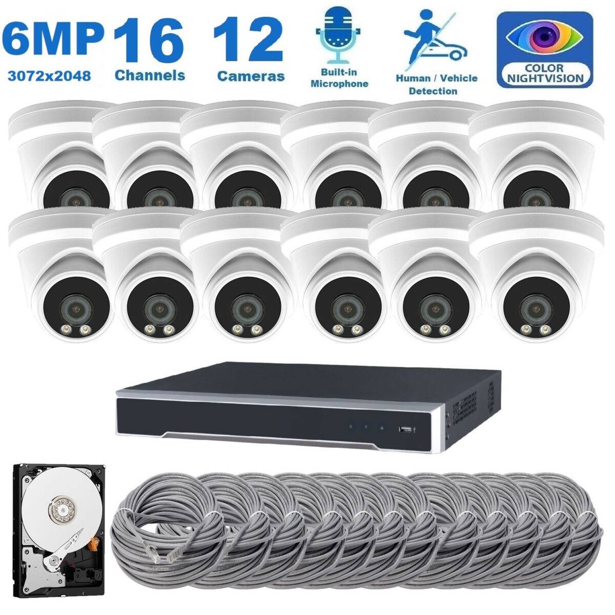 - 12 x 6MP Full Color Night Vision Built-in One Way Audio PoE Turret Camera